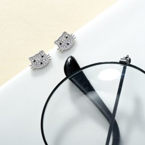 Black zirconia cat stud earrings with water drop AAA cubic zirconia set in brass Key Features: – beautifully shaped black cat with brass tail – elegant and unconventional deisgn – made of AAA+ cubic zirconia and 18K gold plated brass – eco-friendly- nickel, lead and cadmium free – earring is